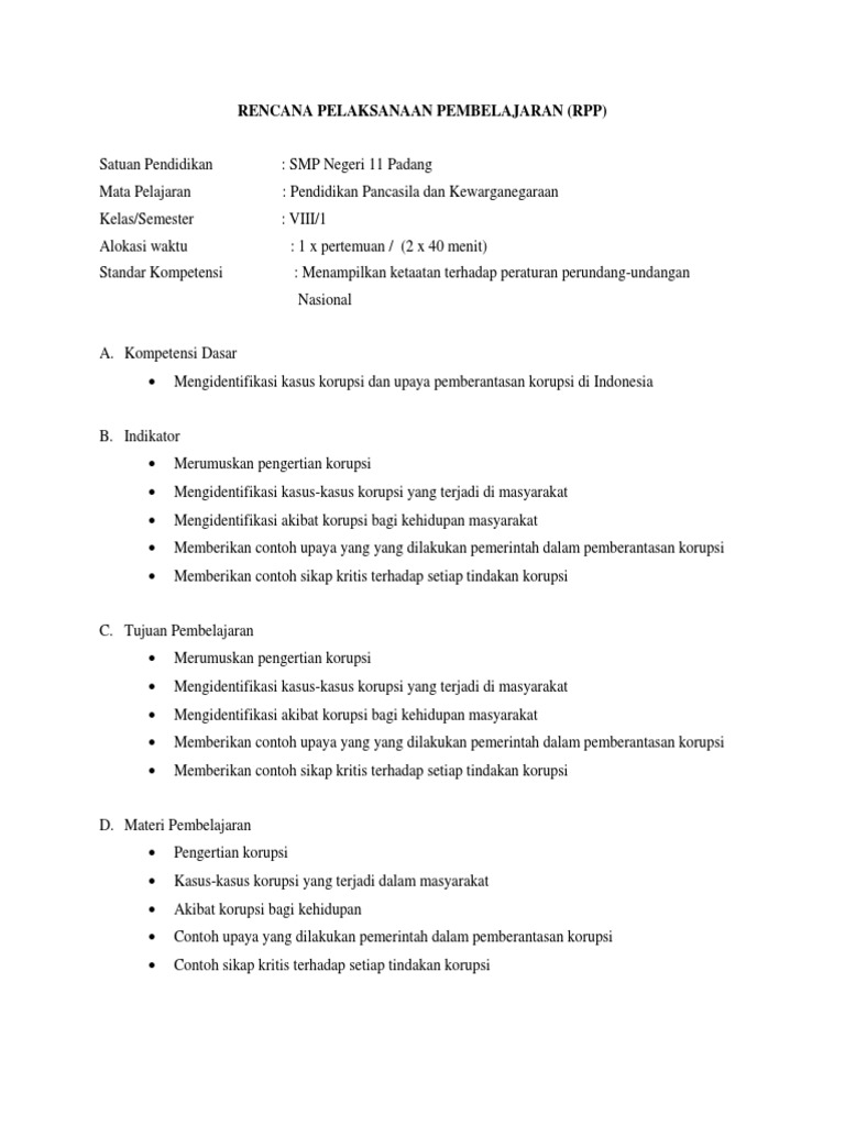 Faizal nugroho saputro x tmpo 2 yuk, baca sekarang di kanvas dan dukung anti korupsi. Untuk kelas vii you are here rpp integrasi pendidikan anti korupsi, adiwiyata dan 6c Episode sebelumnya #1 halaman selanjutnya. Warga negara yang baik adalah warga negara yang bebas dari rencana pelaksanaan pembelajaran (rpp). Identifikasi nilai dasar anti korupsi penyelerasan nilai organisasi dan nilai anti korupsi penanaman nilai dan integritas anti korupsi terima kasih peran tugas ti kemampuan ti 9 nilai dasar anti.